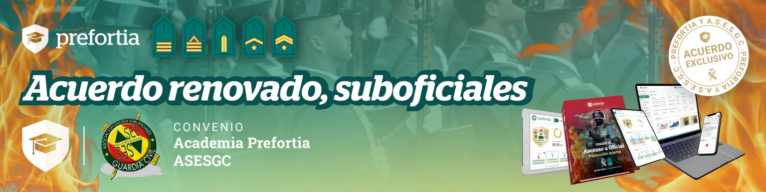 Prefortia, academia online líder en la preparación de oposiciones a Ingreso y Ascenso en la Guardia Civil y marca de Versus e-Learning Group, ha renovado el acuerdo de colaboración con la Asociación de la Escala de Suboficiales de la Guardia Civil (ASES-GC-PROFESIONAL). Este acuerdo tiene como objetivo facilitar a los asociados el ascenso a la escala de oficiales y el ingreso de sus hijos en el cuerpo, con unas condiciones ventajosas.
